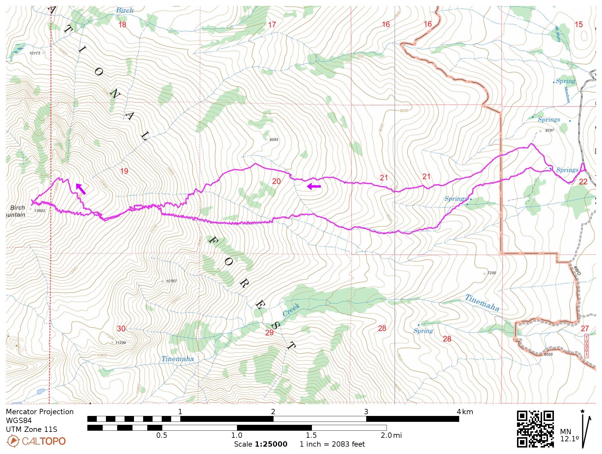 Route: We began near McMurry Meadows and followed the ridge north of Fuller Creek to the southeast face. We then hiked/skinned directly up the southeast face via a wide ridge to about 12,000 feet. From the top of the ridge we headed across the wide bowl to the summit! We followed roughly the same line on the descent but took advantage of a snow-filled creek rather than returning the the ridge north of Fuller Creek.