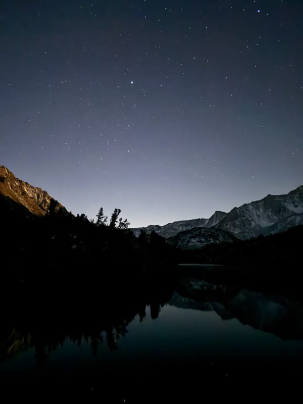 Shannon and I both have work today and are up well before dawn. We break down camp and hit the trail in the dark with headlamps lighting the way. The sky is clear this morning, and the lakes reflect stars in their still waters. It’s really beautiful, and not terribly cold; a lovely “alpine start.”