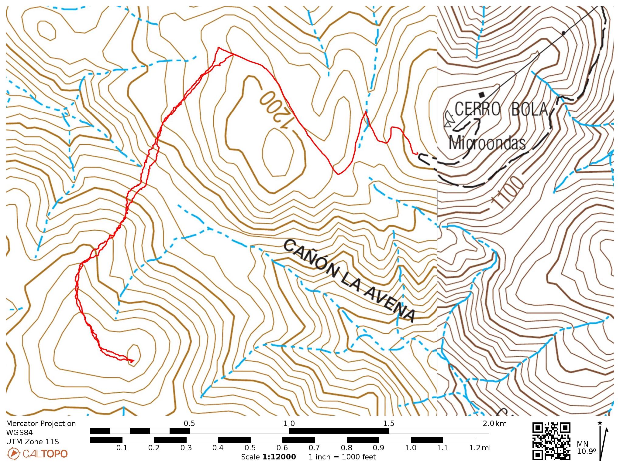 Route: Begin at the switchback near the helipad on the road to the radio towers. Hike down the smaller gravel road for about 1.1 miles and then turn left and hike cross country to the summit. There is no trail to follow and the brush can be incredibly thick. You’ll have to shimmy under several barbed wire fences to reach the second Cerro Bola high point.